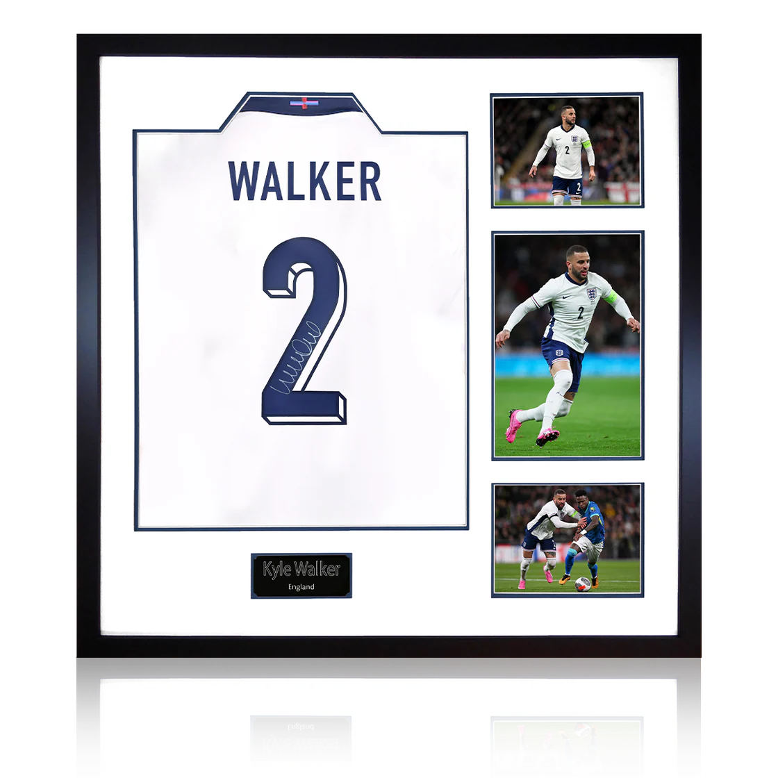 Beautifully presented Elite Frame with a signed England shirt from Kyle Walker. The frame measures approximately 820mm x 820mm.