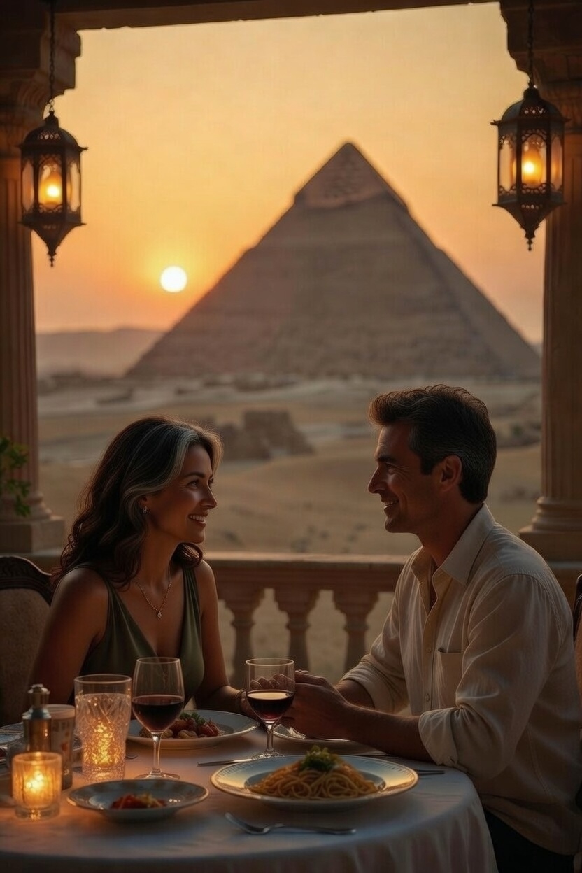You will both step inside the legendary Great Pyramid of Giza for a rare, private after-hours access to the King’s Chamber of Khufu, long after the public and crowds have disappeared.